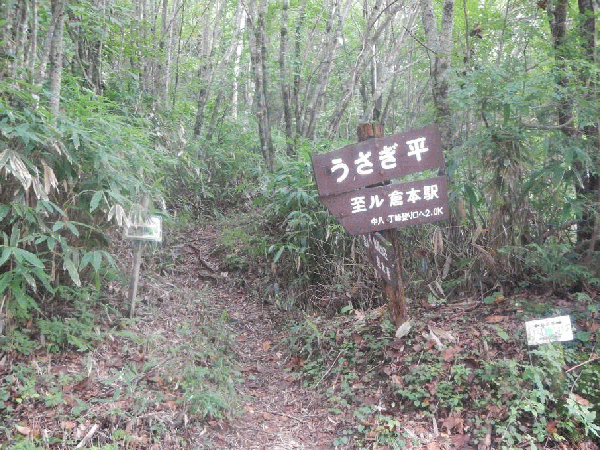 <9/13>曇り→ガス 伊奈川ダム手前6:10 − うさぎ平8:30 − 6合目/吊橋9:35 − 8合目11:45 − 義仲の力水13:00 − 木曽殿山荘13:35