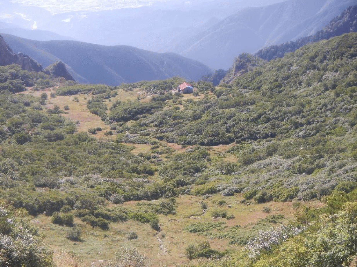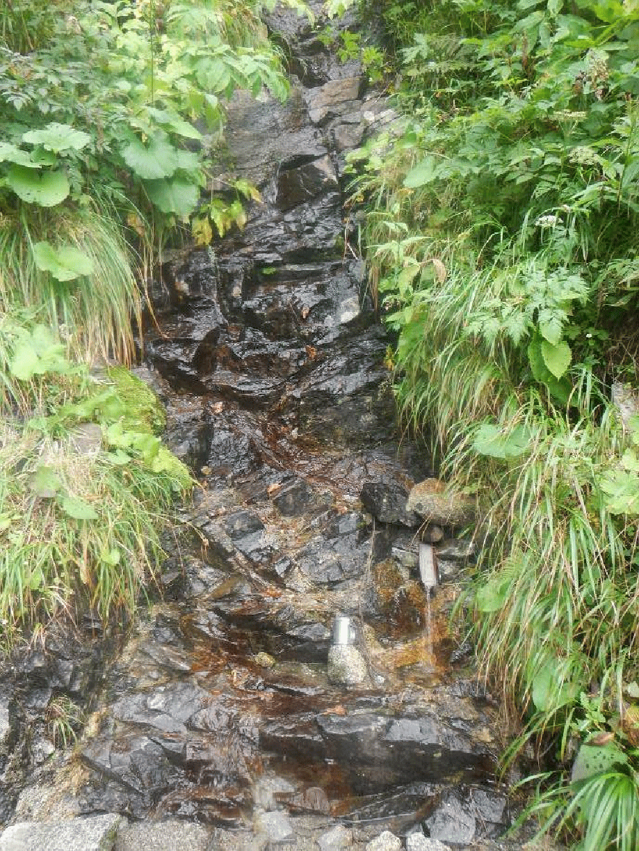 少し下った樹林帯に越百小屋がある。小屋から福栃山を登り返し、急斜面をドスドス下ったところにあった広場が「上の水場」。このコース、水場は「上の水場」と「下の水場」。コルは「上のコル」と「下のコル」という明快な名前だ。「上の水場」で休んだ後、樹林帯の中の登山道をひたすら下った。林道は登りより短く、1時間ちょっとで車に戻れた。長丁場の行程なので暗くなるのも覚悟していたが、明るいうちに下山することができた。