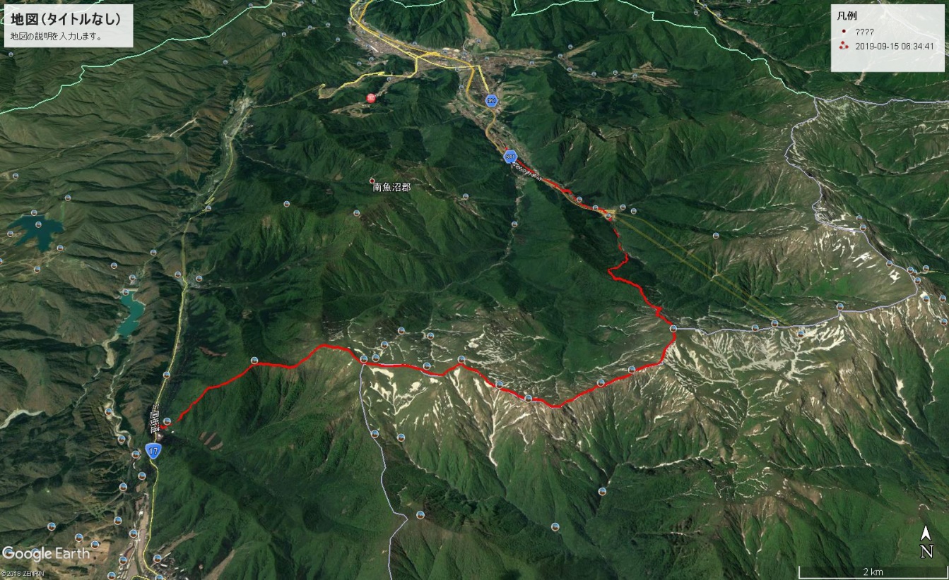 「あ〜っ!この人は平標の山頂から平標新道を下って直接土樽まで歩いていくのだ!」