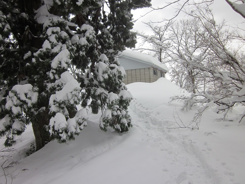 かなりの雪の積もり具合で70~80㎝はありそうだ。思った以上の積雪で不安やらワクワク感やら・・・慎重に進む。