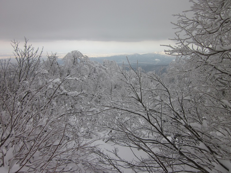 四合目近くはブナ林に雪が着いて幻想的で綺麗だ。さほど寒さを感じず雪景色を堪能する。只々眺めては綺麗だ・すごい・・の連発状態・・