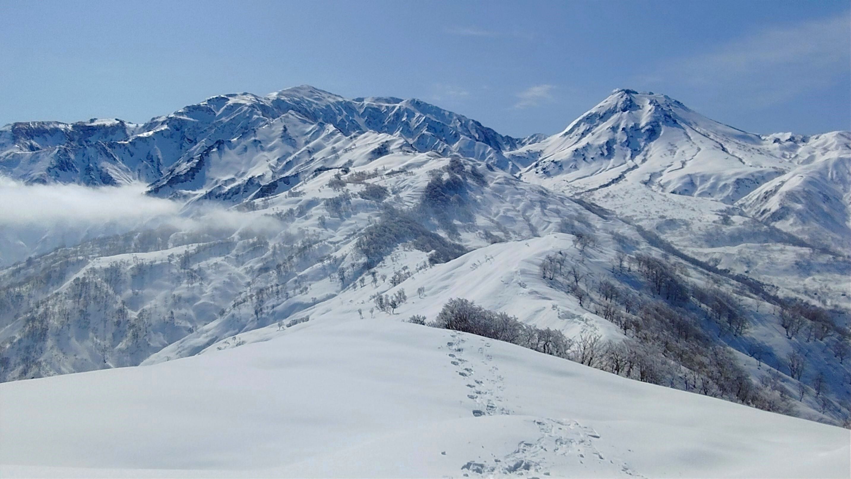 放山に登山道はなく積雪期限定の山。夏場は激ヤブで展望はないが冬から春にかけては超絶景が望める。