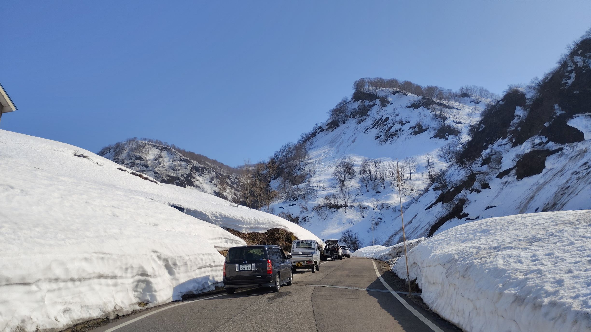 先月後半からまとまった降雪がないので、笹倉温泉周辺も今の時期としては雪が少ない。