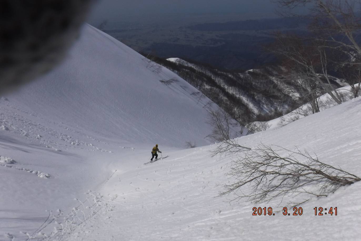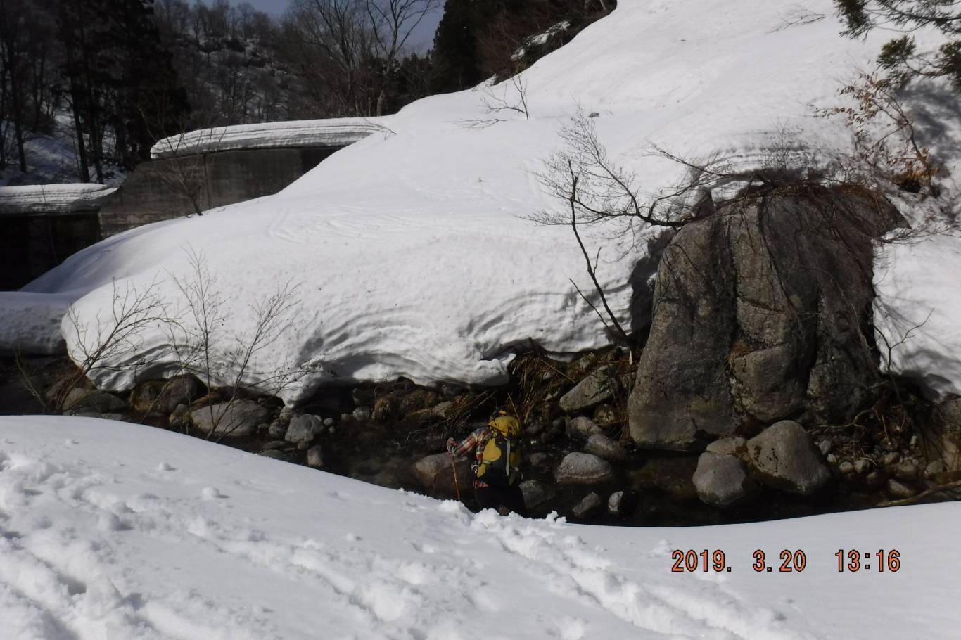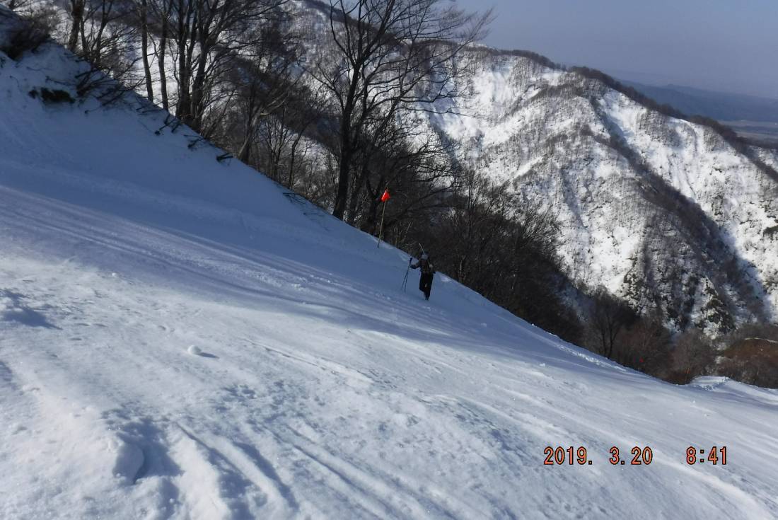 今年は暖冬で3月9日に行った高知山で取り付き尾根で雪の少なさを感じていた。スキー場山麓の積雪も70cm位で雪解けが進んでいたのでワサビ沢に雪が十分に残っているか、特に沢の下部で右岸に移ってから出会いまでの急斜面に雪が付いているか気になっていた。