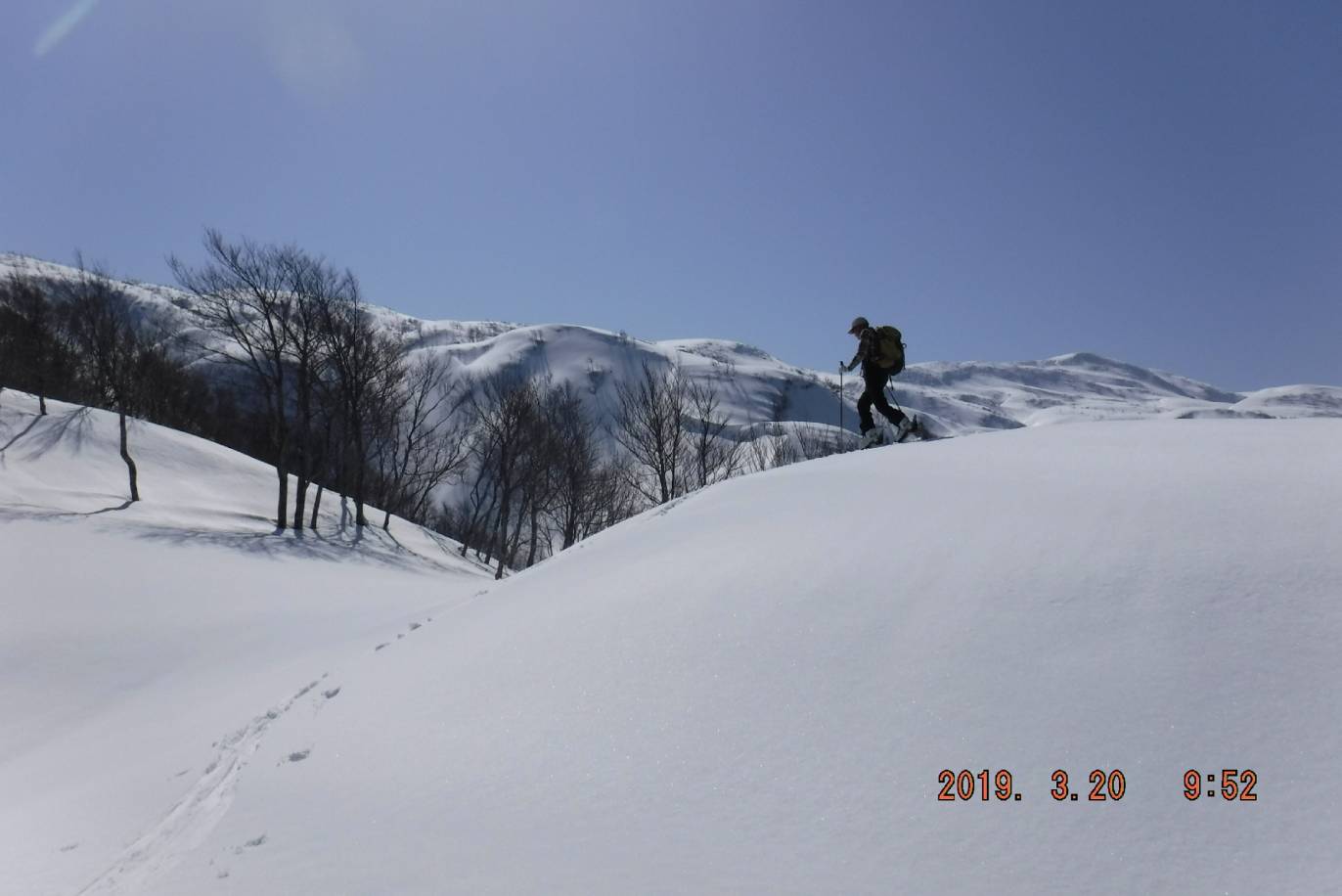 【時間記録】ニノックススキー場7:00〜ワサビ沢出合〜リフトトップ9:10〜稜線10:30〜頂上11:25=12:00〜ワサビ沢〜ニノックススキー場13:50