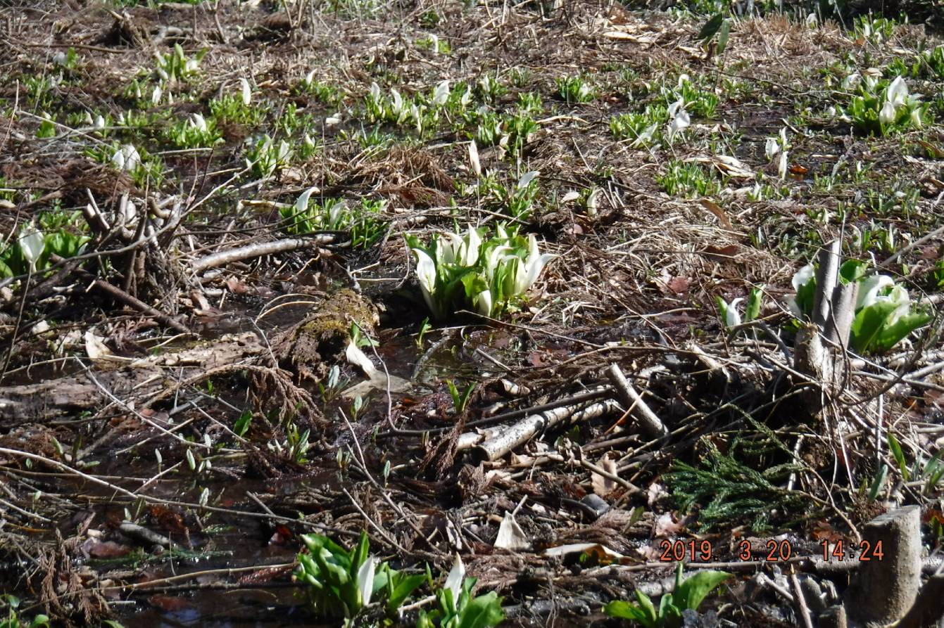 麓の蔵光集落の村はずれに咲く水芭蕉
