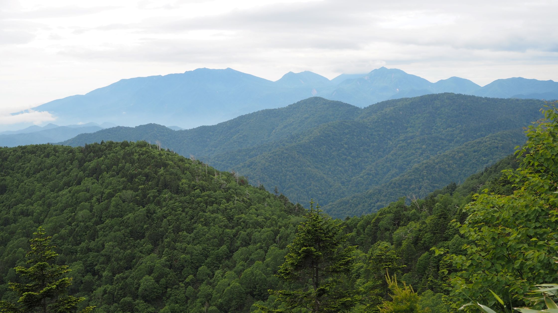 徐々に展望が開けてくるが見えている山が何山かさっぱりわからない。左側に見えるこの大きな山群は、メンバーが山名同定アプリで調べてくれたところでは男体山、女峰山といった日光の山々のようだ。