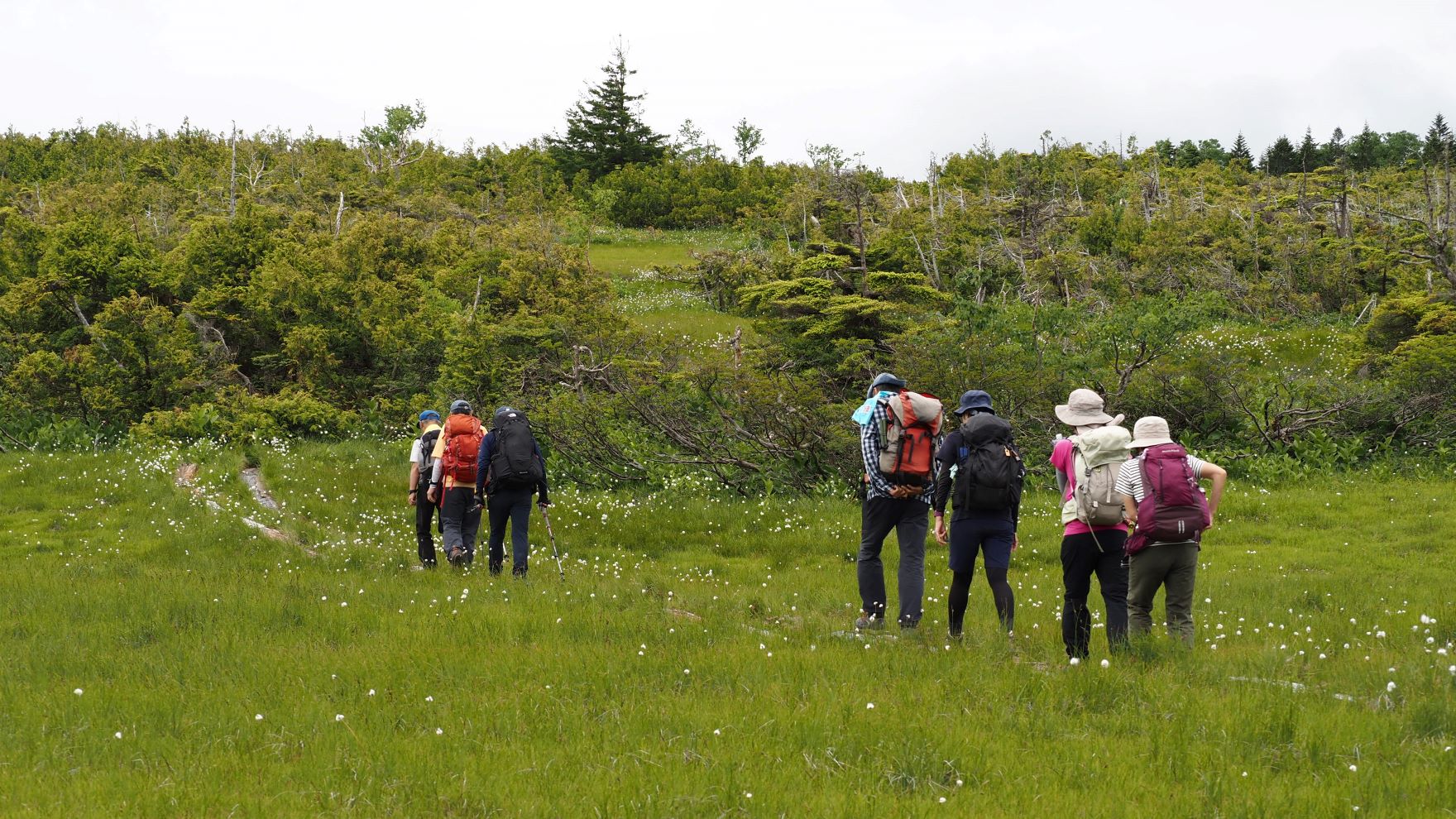 最初に登り着いた湿原が見えてきた。
