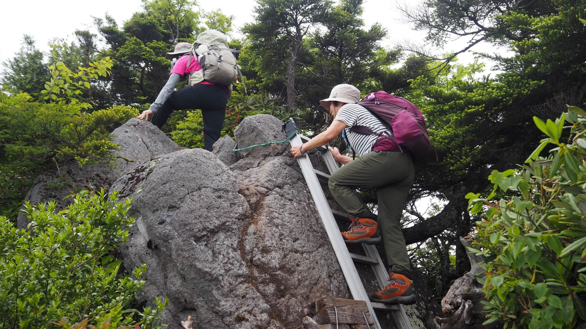 帝釈山の山頂が近くなると岩場が出てくる。ハシゴがあるが特に問題なし。
