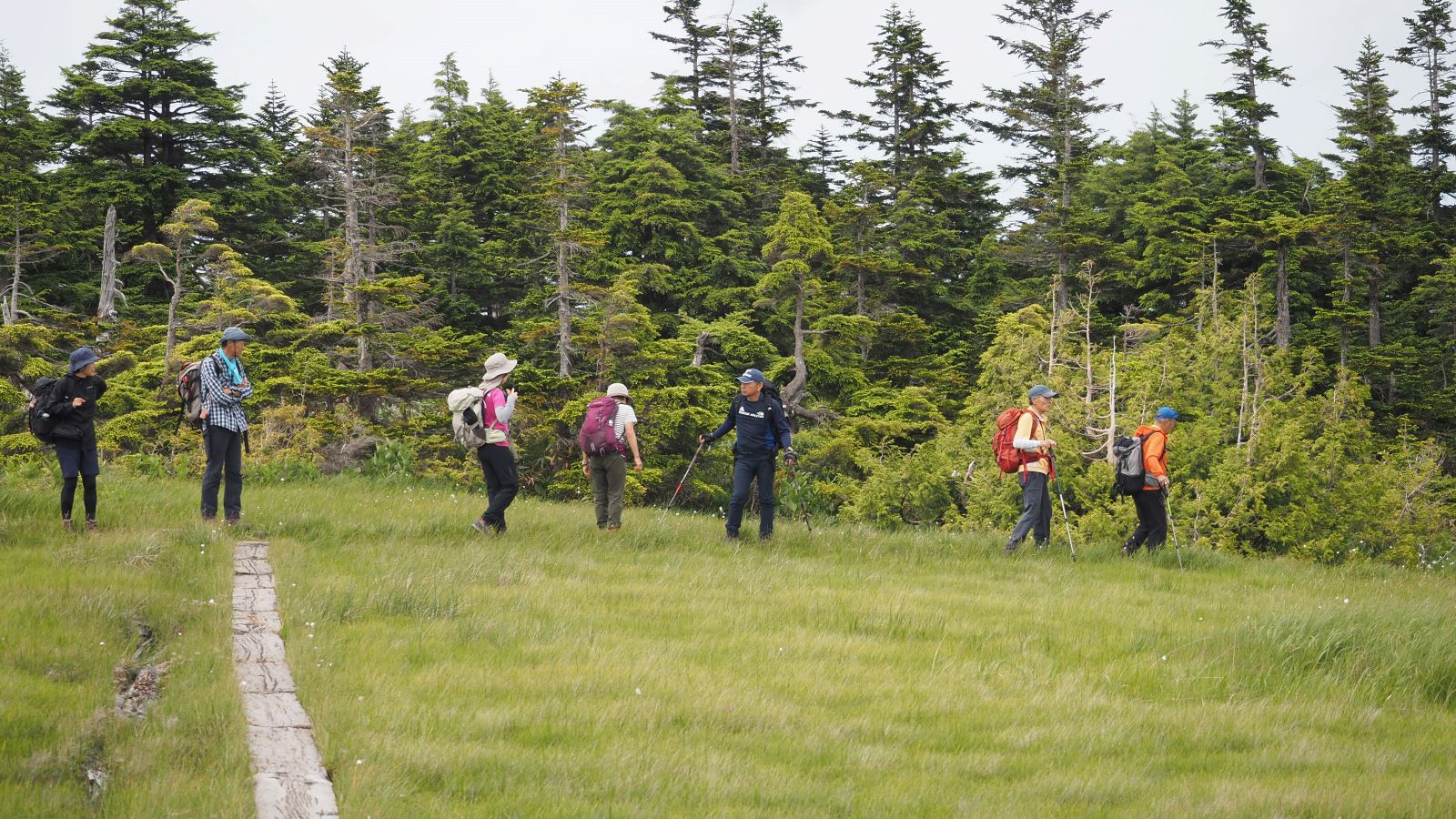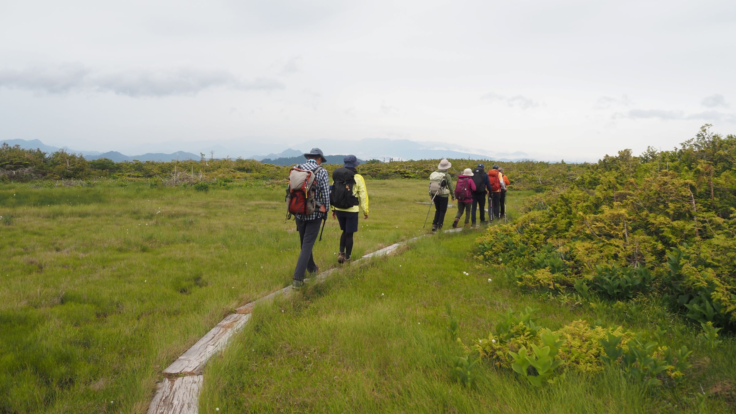 ついにたどり着いた山上に広がる湿原。ここには木道が2ルートあって反時計回りの一方通行となっている。