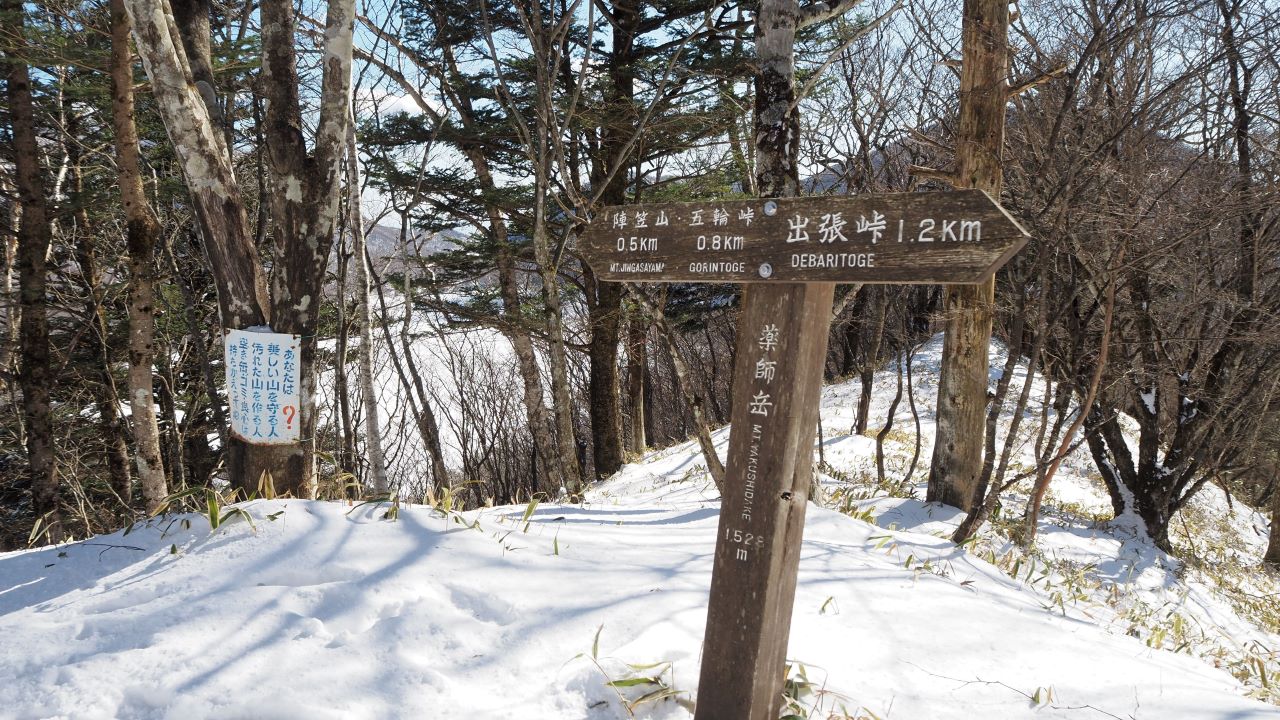 船ヶ鼻山から薬師岳に向かう。雪上に2-3日前のものと思われる足跡が2つほどあったが誰にも会わない。あまり展望のない稜線が続く。