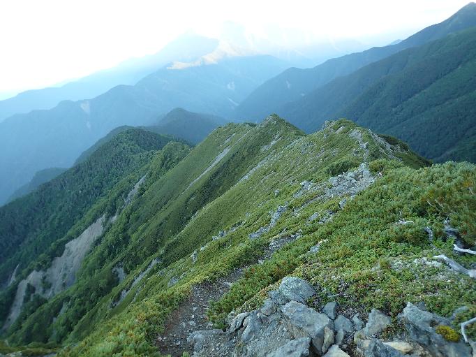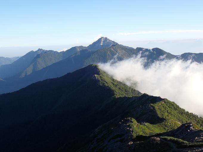 3日目は真夜中?から歩き出し、三峰岳で夜明けを迎えた。このコースは昨年も通っている(ku-ninn277)。