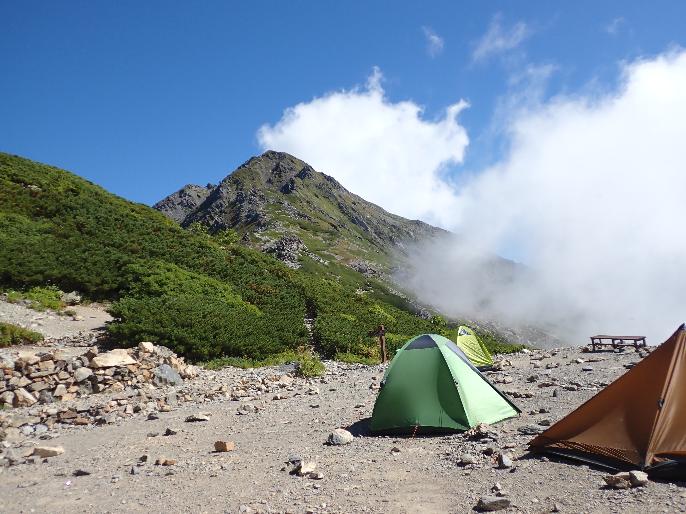 <9/1>晴れ 熊の平小屋3:20 - 三峰岳5:20 - 野呂川越7:50 - 両俣小屋8:25 - 北沢峠12:25