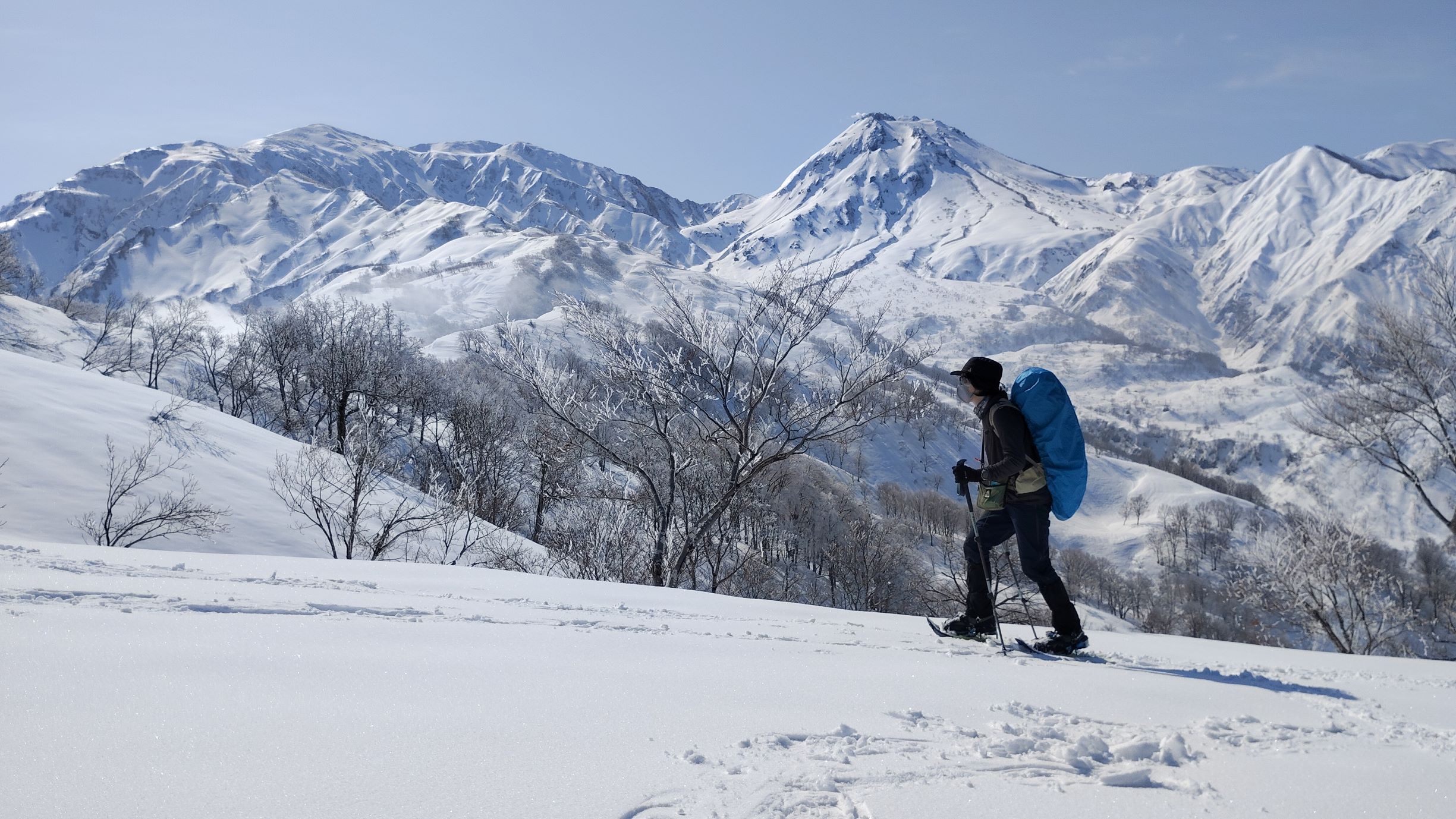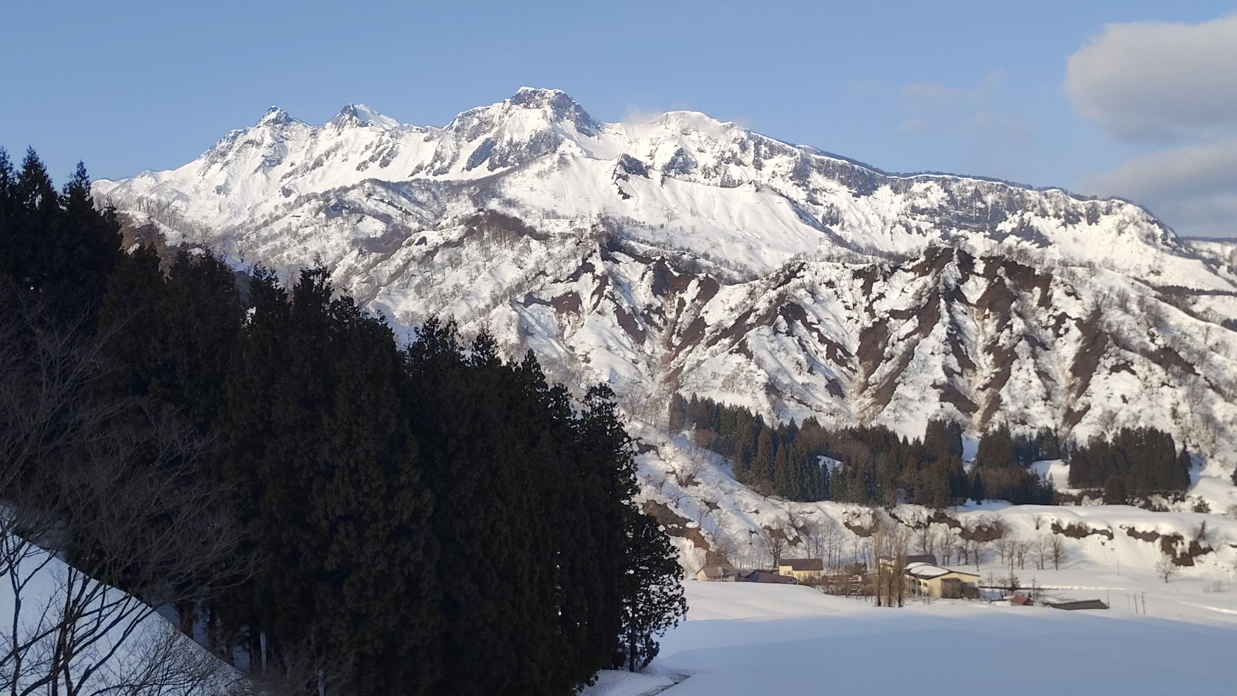 放山の反対側にあるシャルマン火打スキー場は今年からリフトの下り乗車が禁止、ゲレンデ内のツボ足歩行も禁止らしい。スノーシュー、ワカンの登山者は笹倉温泉から登るしかない。