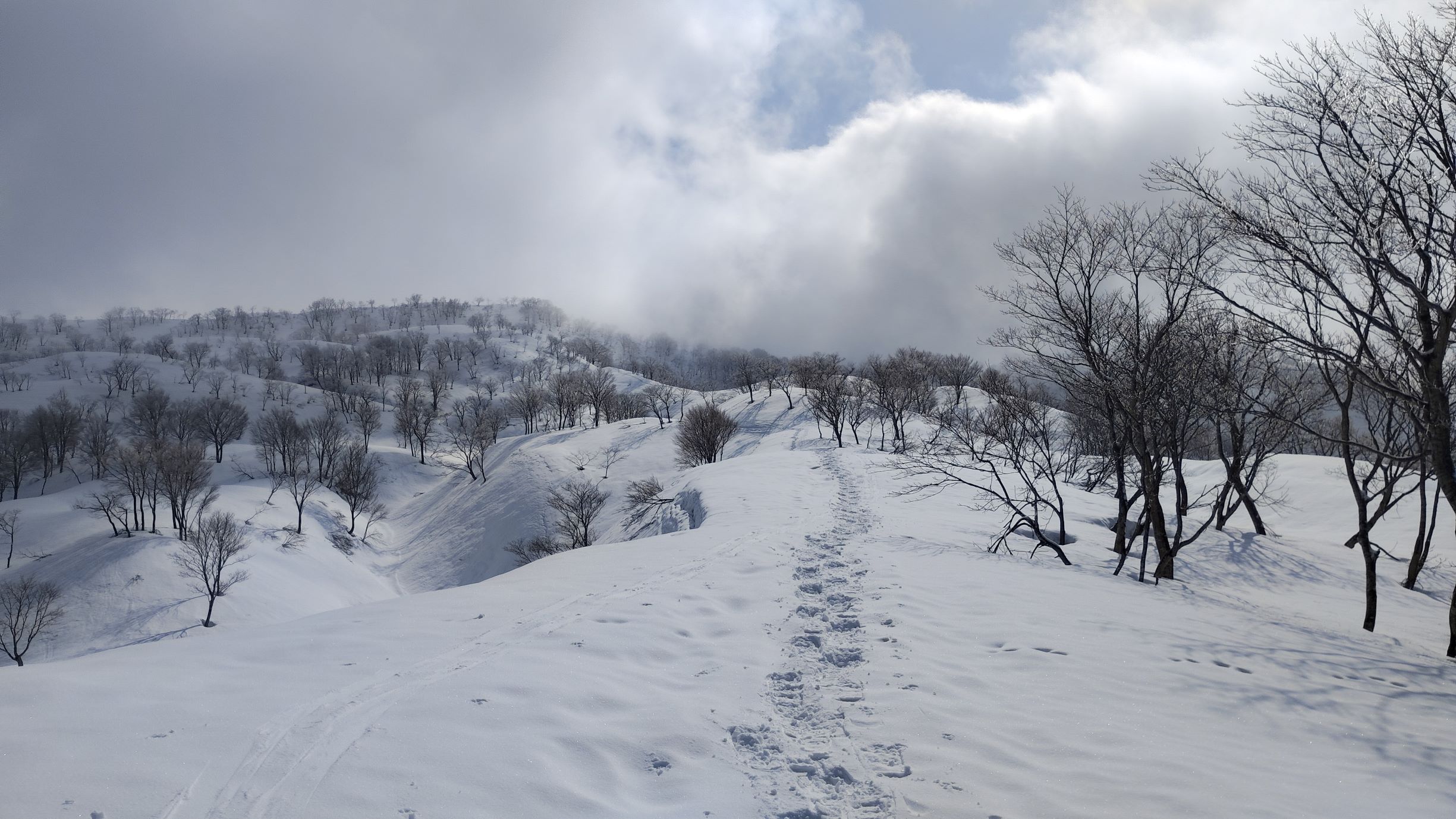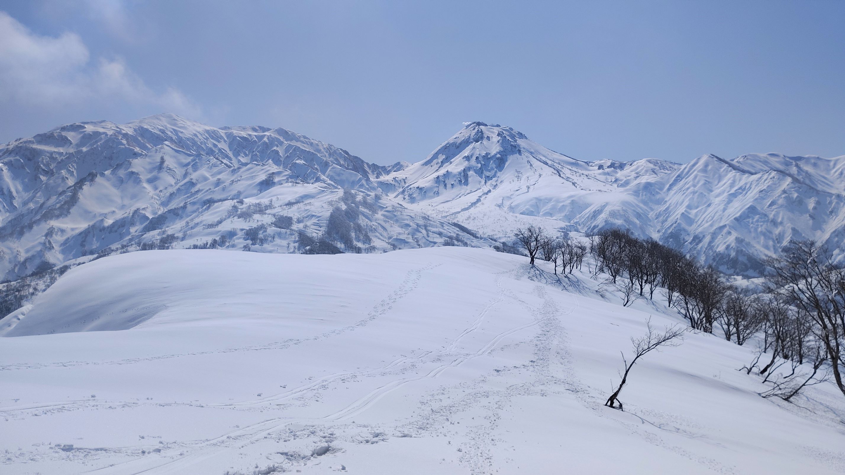 放山に登山道はなく積雪期限定の山。夏場は激ヤブで展望はないが冬から春にかけては超絶景が望める。