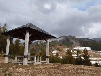このあたりも素晴らしいブナの林が広がっている。途中でワカンを外す。針葉樹林帯に入ると林道に出た。林道をそのまま行くとブドウ畑に突き当たり、周囲を回るように道標が導いてくれる。10年以上も前になるだろうか。蔵王集落からの高坪山のルートが好きで大分登っていたことがあった。その時に大規模に土地を造成していたが、このブドウ畑を造っていたのか、とひとり合点する。